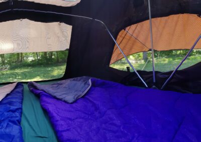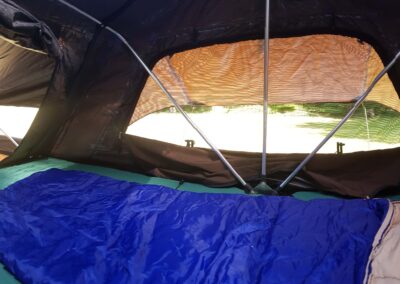 Door het dubbeldak systeem, de fly-top, ontstaat een extra isolatielaag bovenop het reguliere dak. Hierdoor blijft de temperatuur in de daktent op warme dagen aangenaam. Tijdens koude nachten helpt deze extra isolatie tegen warmteverlies. Daarbij beschermt het dubbeldak systeem de tent tijdens regenbuien. Als optie leveren wij een katoenen hemel voor een extra isolatielaag in uw daktent. Deze hemel kan in de daktent blijven zitten als u deze invouwt. De daktent kan optimaal worden geventileerd door twee ventilatieopeningen, twee afsluitbare ramen op de zijkanten en twee groot raam tegenover de ingangen. De zijramen en de ingangen kunnen ook tijdens een regenbui open blijven door de slim geplaatste luifels. Om insecten buiten te houden zijn de ventilatieopeningen, ramen en de deur voorzien van muskietengaas. De Dare to be Different Daktent 220XL komt met een anti-condens ondermatras in een dikte van 8mm en is eventueel te upgraden naar 15mm. Dit zorgt voor meer ligcomfort en gaat condensvorming tegen in uw tent.