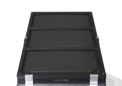 De iKamper BDV is uniek in zijn soort, door zijn sterke frame en meerdere bevestigings rails is hij perfect om je MTB, kajak, uitrusting of zelfs een zonnenpaneel bevestigen. Ook is de BDV ontzettend vlak in vergelijking met andere hardshell tenten, en is hij in gesloten staat maar 18cm hoog. Het openen van de tent is ook zeer gemakkelijk, haal de twee sluitingen los en geef een zachte duw tegen de tent deksel en de tent is binnen een hand omdraai geopend. Bevestig de trap aan de tent, en je bent klaar om te kamperen!