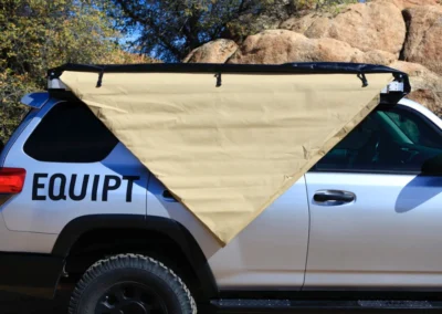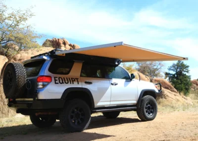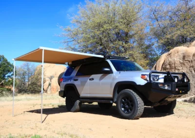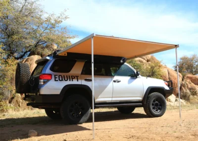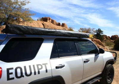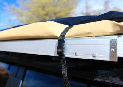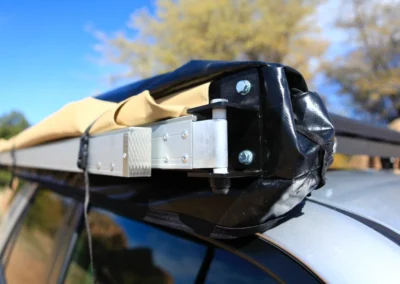 De Swift luifel wordt geleverd met een zwarte PVC draagtas met een YKK rits en weegt slechts 12 kg. Bovendien zijn er montagekits beschikbaar om de luifel op de meeste voertuigen met dakdragers te installeren.