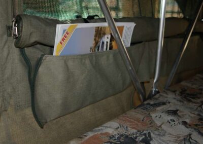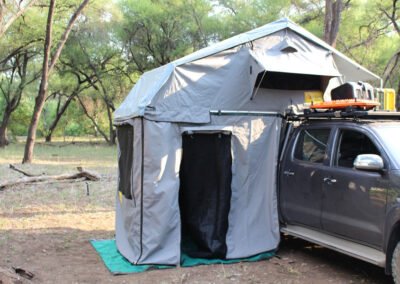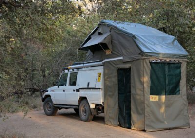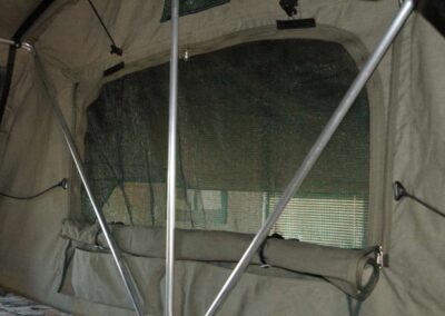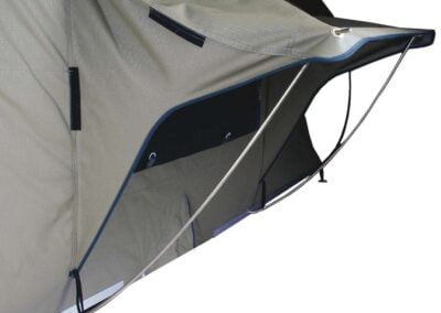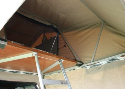 Deze daktent van hoogwaardige kwaliteit wordt standaard geleverd met een ondertent. De canvas panelen van de ondertent zijn op maat gemaakt en hebben een volledig openende deur, een weerbestendig raam met muggengaas, een ritssluiting aan de achterzijde en een grondzeil. Doordat de ondertent opgebouwd kan worden met meerdere panelen, kun je ook zelf bepalen of je de tent volledig wilt afsluiten door alle panelen erin te hangen, of slechts twee panelen wilt gebruiken voor een overkapping.