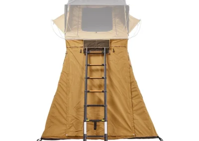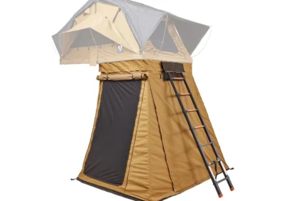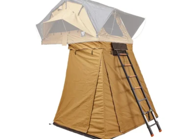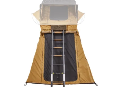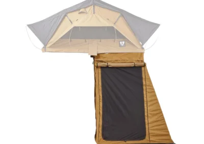 Ontdek de veelzijdige ondertent/voortent voor de Vickywood SMALL WILLOW daktent, een handige toevoeging die bijna op elk voertuig past dankzij het slimme ritssluitingsysteem (200 – 220 cm). Deze Ondertent/Voortent biedt extra opbergruimte, een extra slaapplek of een beschutte loungehoek voor uw Vickywood SMALL WILLOW. Met waterbestendige stoffen panelen, getapete naden en flexibele muskietennetten bij de openingen, biedt de luifel bescherming en comfort in alle weersomstandigheden. Met een telescopisch stokkensysteem creëert u eenvoudig een overdekte veranda, terwijl de duurzame PVC-vloer en verwijderbare basis extra gemak bieden, zoals het ombouwen van de voortent tot een douchecabine.