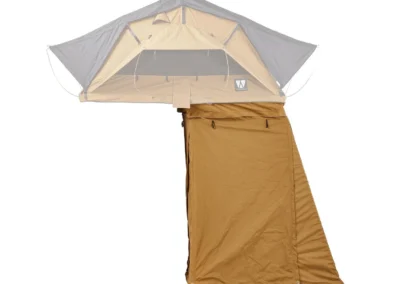 Ontdek de veelzijdige ondertent/voortent voor de Vickywood SMALL WILLOW daktent, geschikt voor bijna elk voertuig dankzij het slimme ritssluitingsysteem. Deze luifel biedt extra opbergruimte, een extra slaapplek en bescherming tegen diverse weersomstandigheden, terwijl het tevens mogelijk is om een kleine overdekte veranda te creëren voor extra comfort.