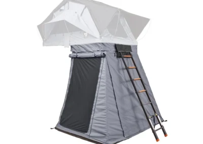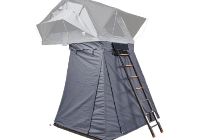 Ontdek de veelzijdige ondertent/voortent voor de Vickywood SMALL WILLOW daktent, een handige toevoeging die bijna op elk voertuig past dankzij het slimme ritssluitingsysteem (200 – 220 cm). Deze Ondertent/Voortent biedt extra opbergruimte, een extra slaapplek of een beschutte loungehoek voor uw Vickywood SMALL WILLOW. Met waterbestendige stoffen panelen, getapete naden en flexibele muskietennetten bij de openingen, biedt de luifel bescherming en comfort in alle weersomstandigheden. Met een telescopisch stokkensysteem creëert u eenvoudig een overdekte veranda, terwijl de duurzame PVC-vloer en verwijderbare basis extra gemak bieden, zoals het ombouwen van de voortent tot een douchecabine.